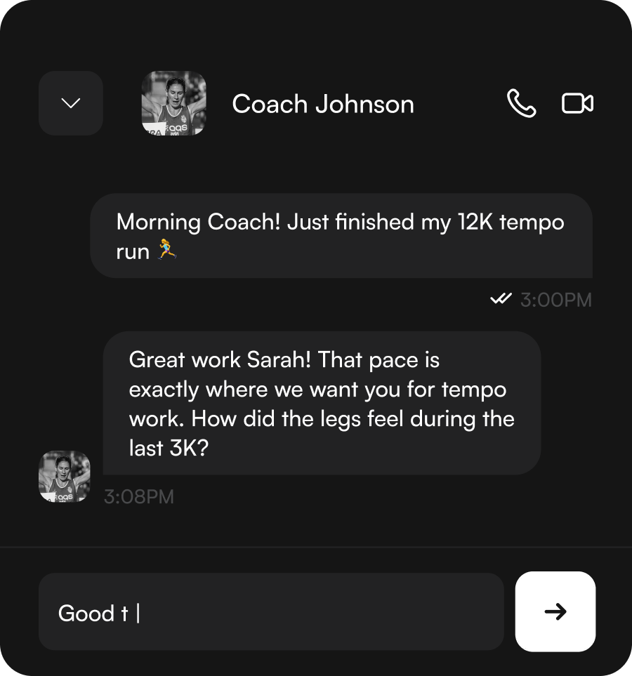 Stay connected with your coach through simple, direct communication. Share updates, ask questions, and get guidance without complexity or delay.
