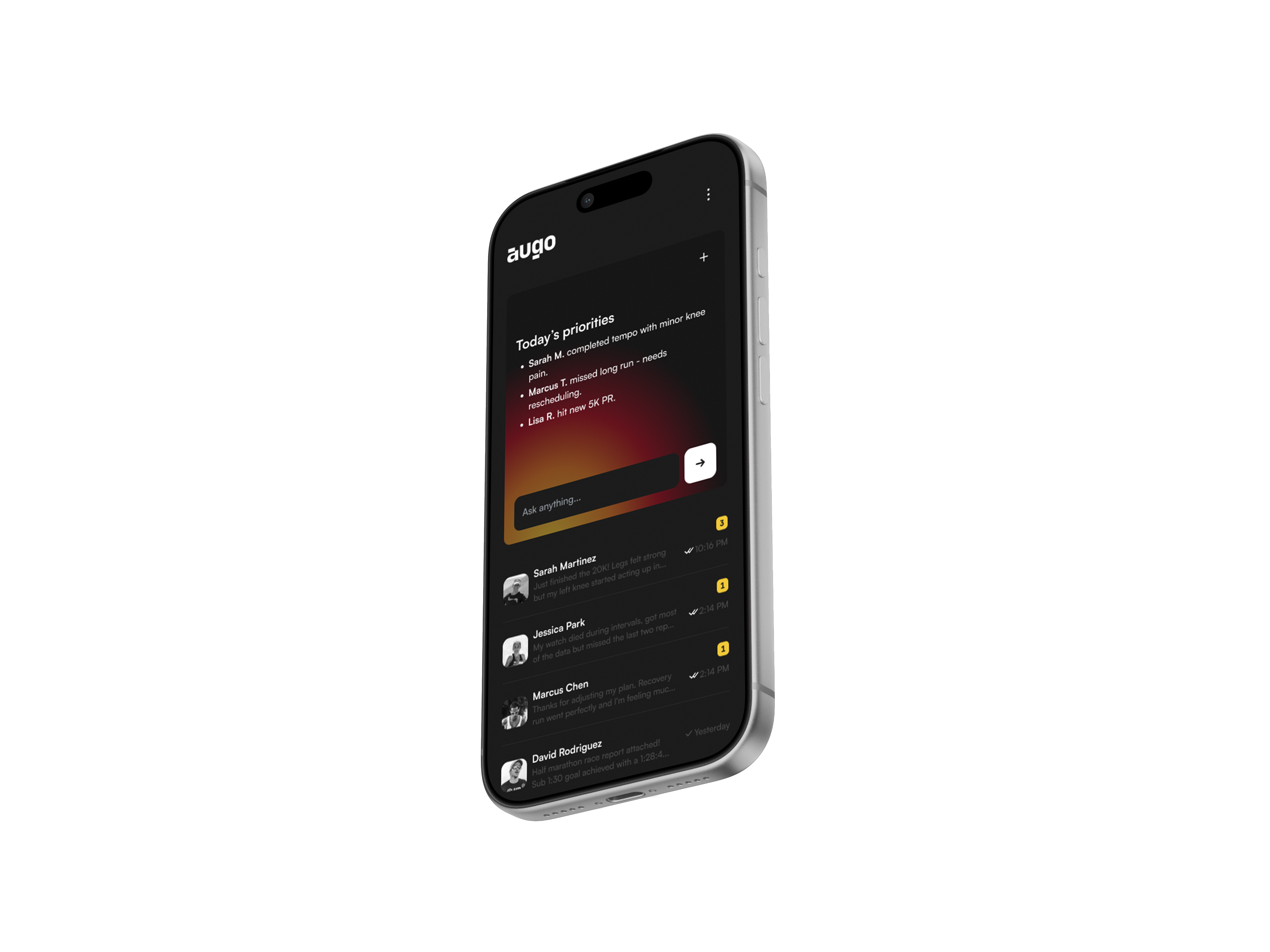 augo captures how athletes feel, what advice gets followed, and patterns that matter for real progress.